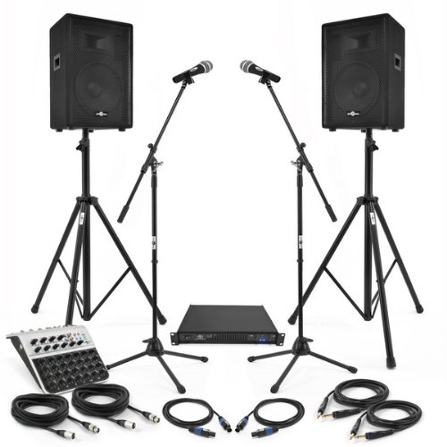 Système de Sonorisation 400W avec mixeur actif avec micro stands et câbles - le pack PA micros et Stands vous recevrez notre système de