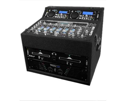 Régie de sonorisation IBIZA SOUND prête à l'emploi en quelques instants. Dans le flight case tout est parfaitement positionné. A votre disposition : un lecteur double CD MP3 avec port USB et lecteur de carte SD pour le Mix analogique et numérique, une magnifique table de mixage laquée noire à 4 voies avec équaliseur et section d'effets spéciaux, un amplificateur musclé de puissance de 2 x 480 W.